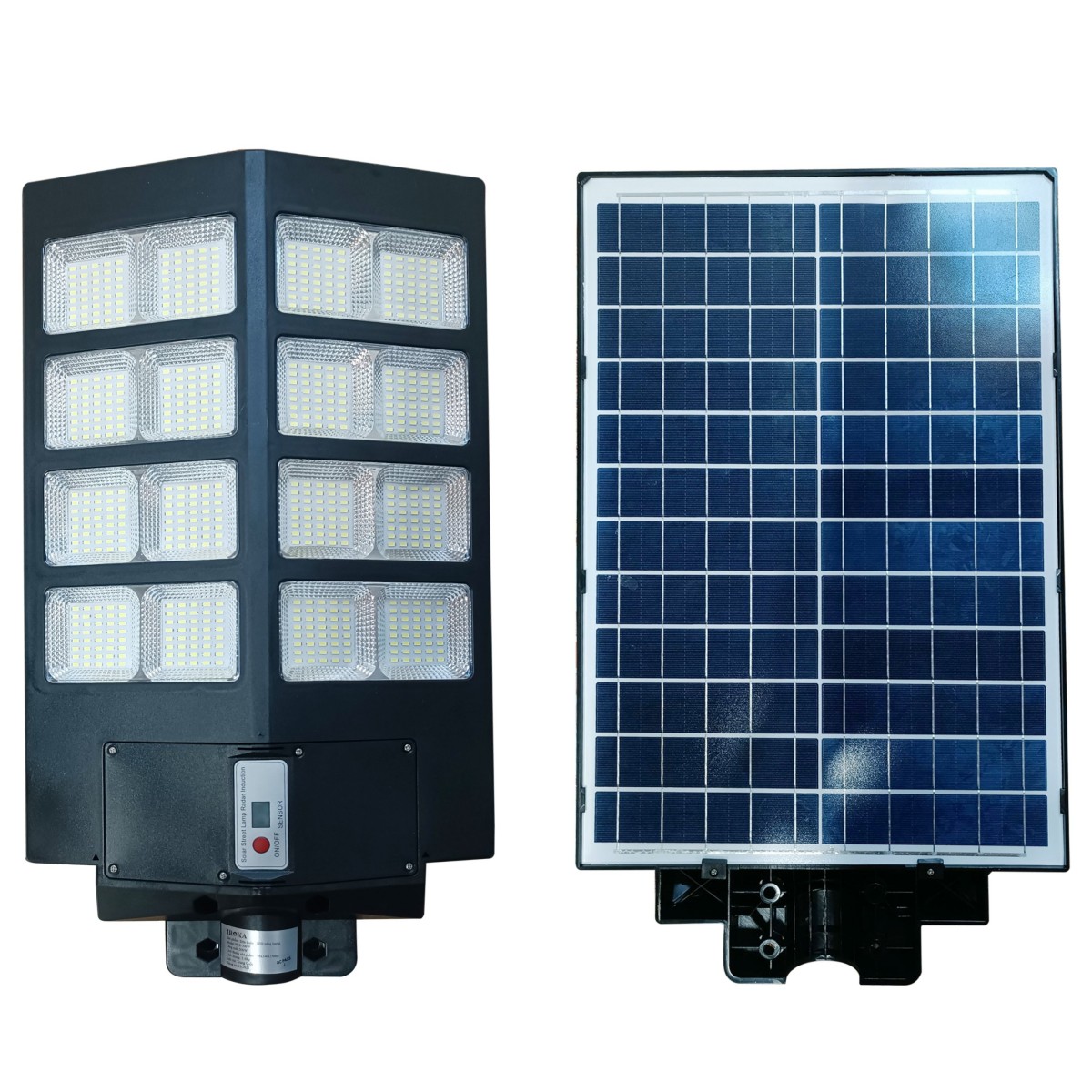 Bộ sản phẩm gồm:thân đèn liền tấm pin mặt trời phía trên+Điều khiển từ xa+giá đỡ +Nở sắt +1 bộ ốc vít.